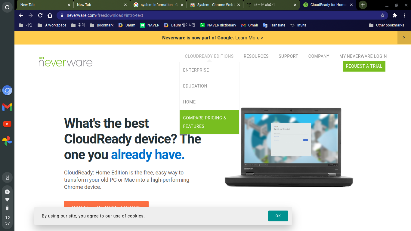 크로미움 OS는 아래 neverware 사이트에서 받을 수 있다.