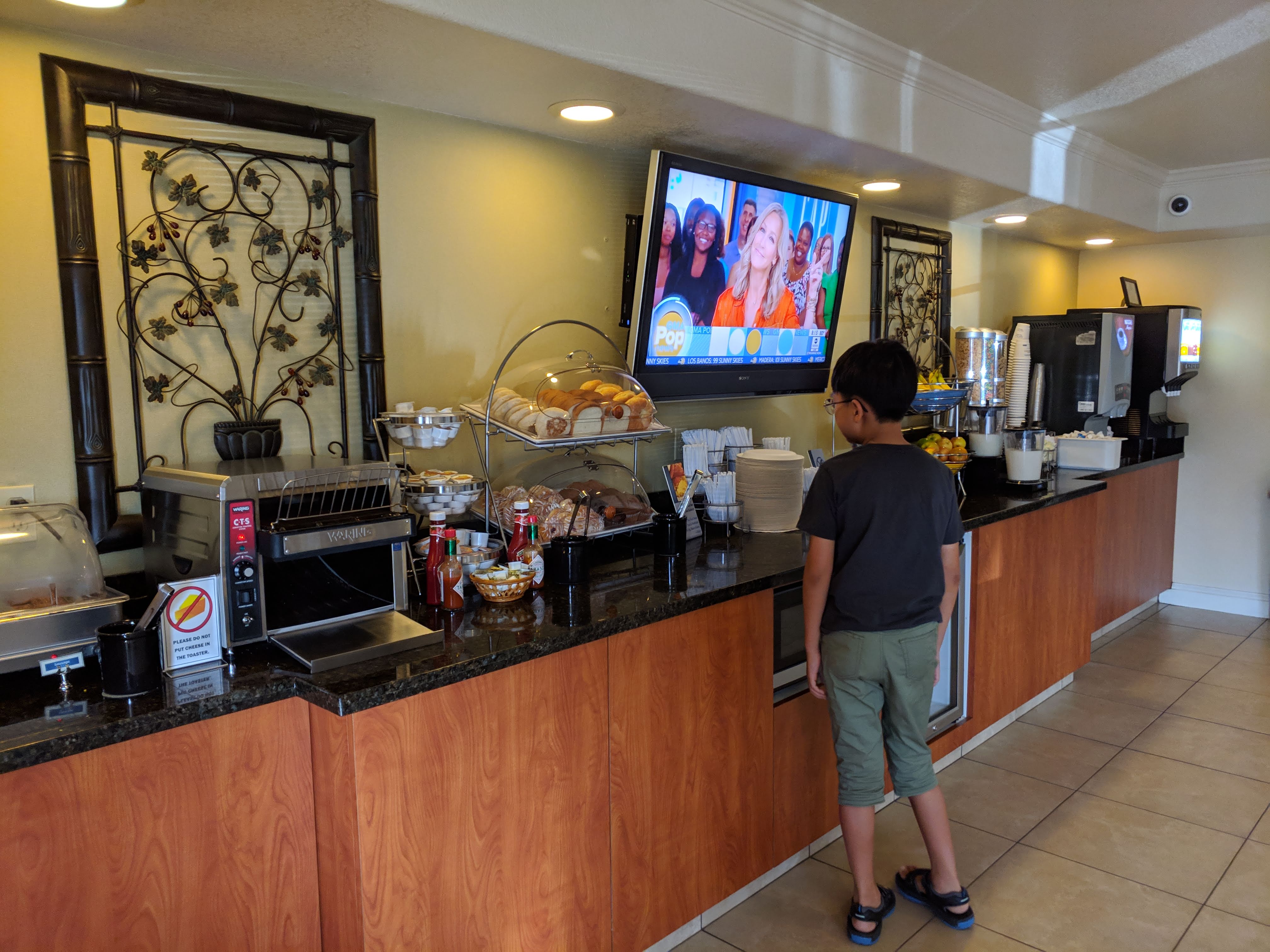 조식은 특별한 건 없었다. 빵과 도넛, 잼, 버터, 시리얼과 소시지. 핫케익 만들 수 있는 기계 정도..