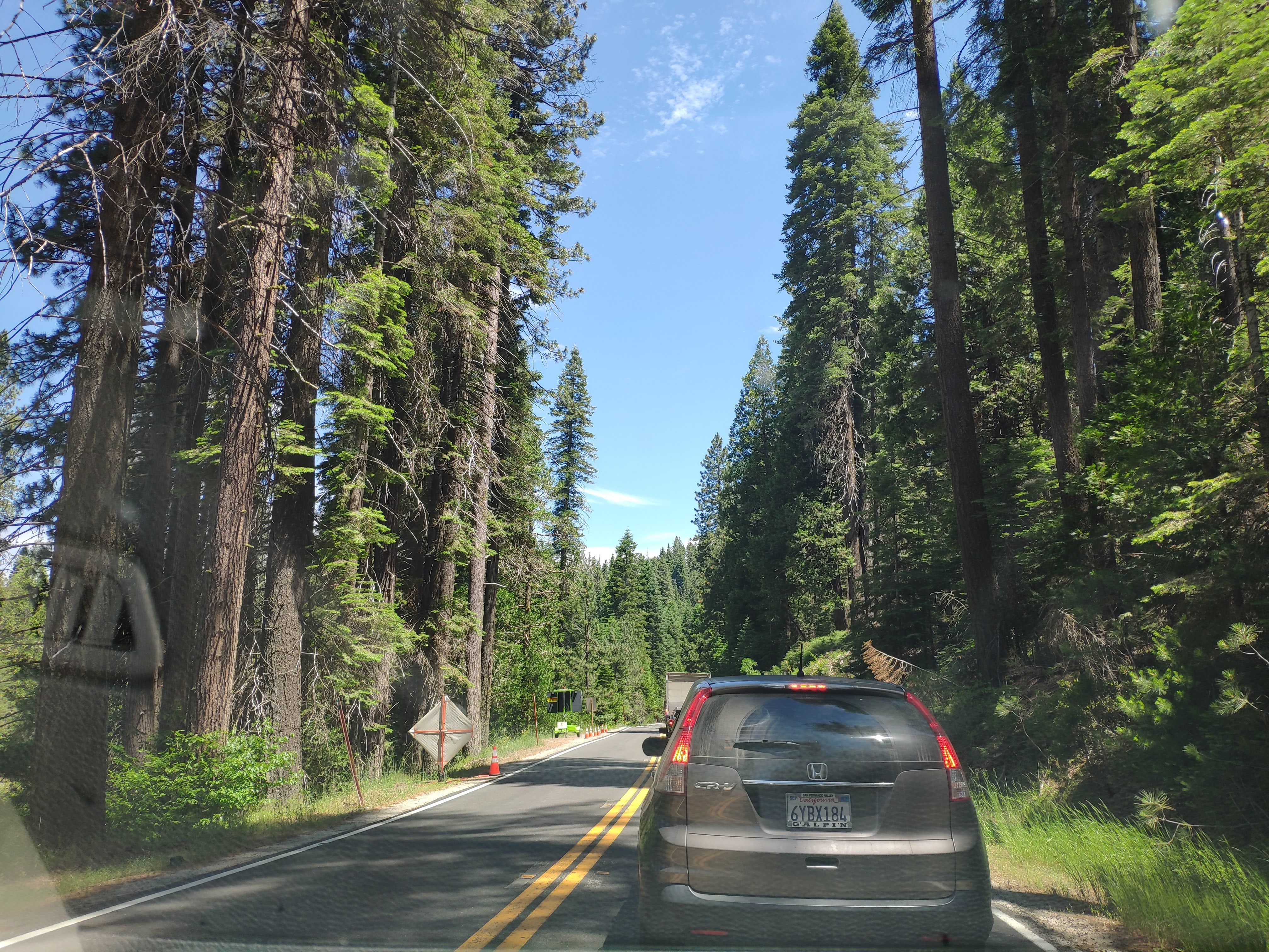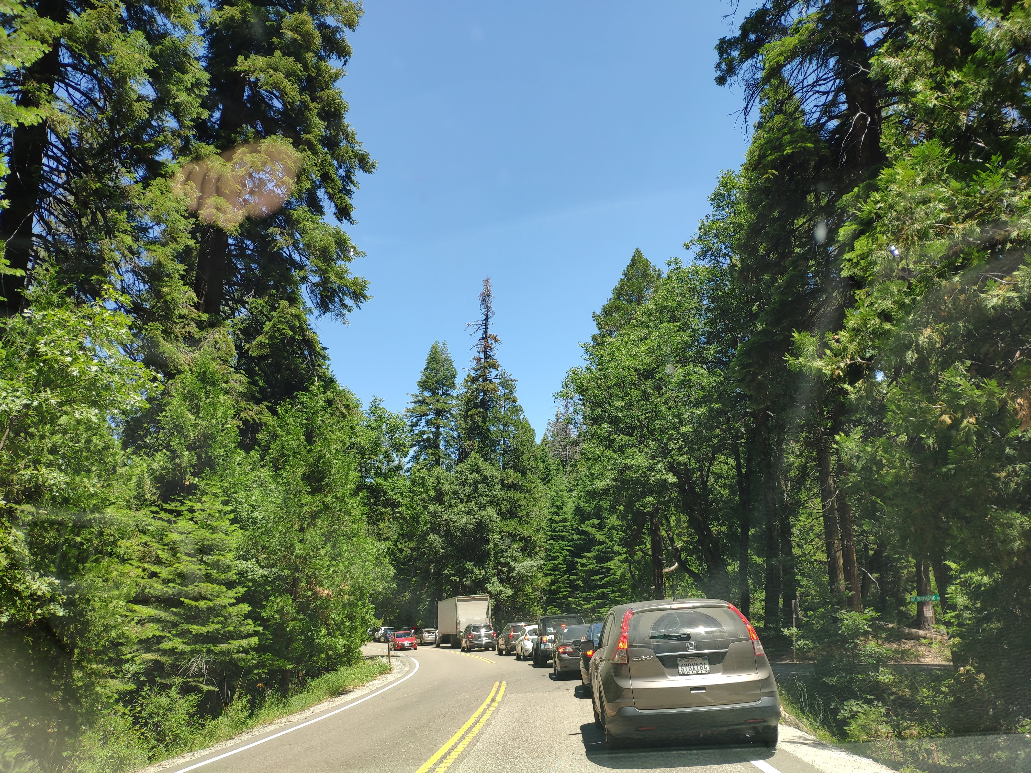 요세미티 공원의 남쪽 입구로 들어가는 경로이기 때문에, 첫 목적지는 자이언트 세콰이어(Giant Sequoia) 나무가 가득한 Mariposa Grove(마리포사 그로브)였는데, 요세미티 공원 입구가 정확히 어디 쯤인지는 감이 안 오는 상황에서 갑자기 긴 정체가 시작되었다..
