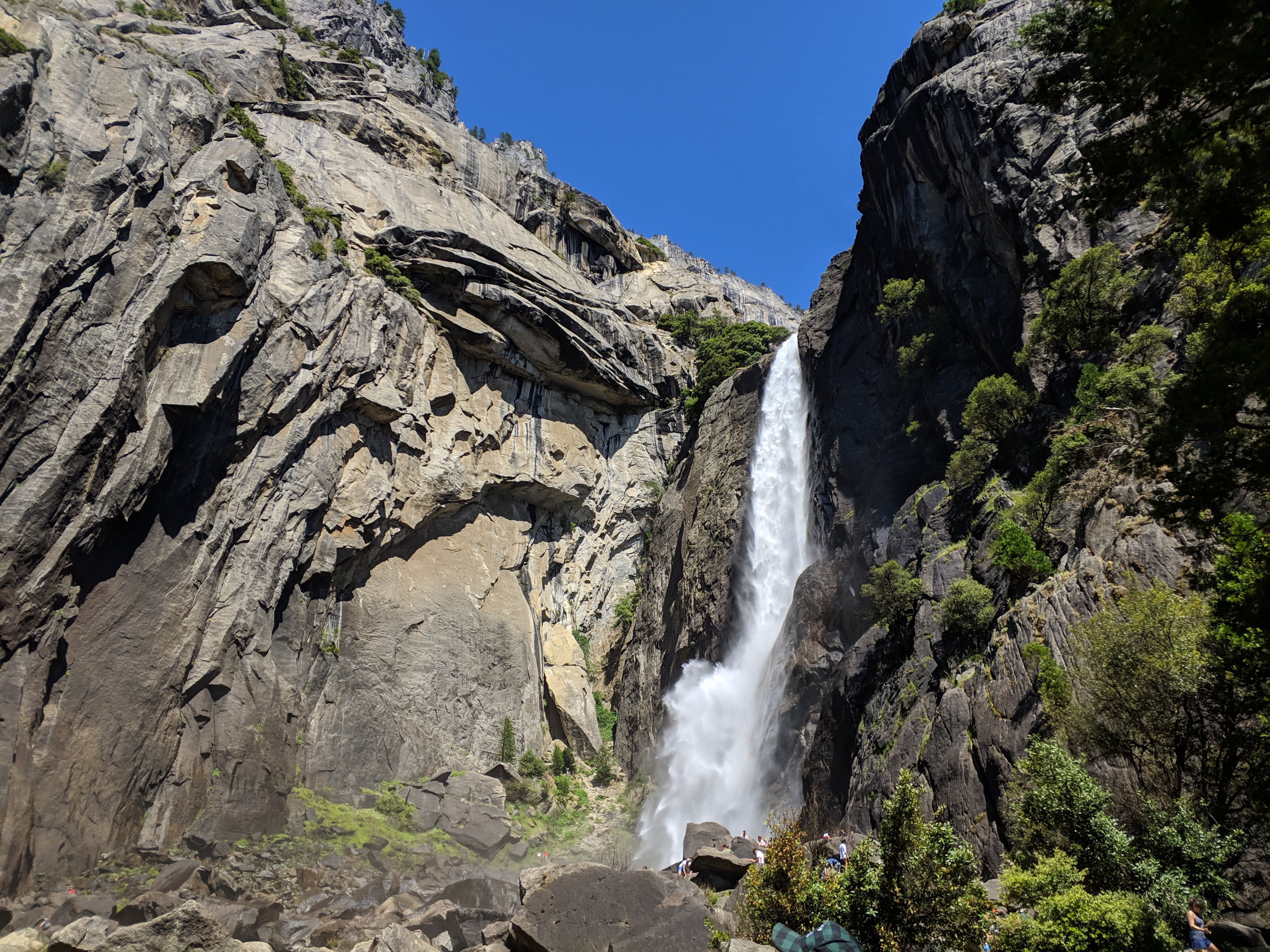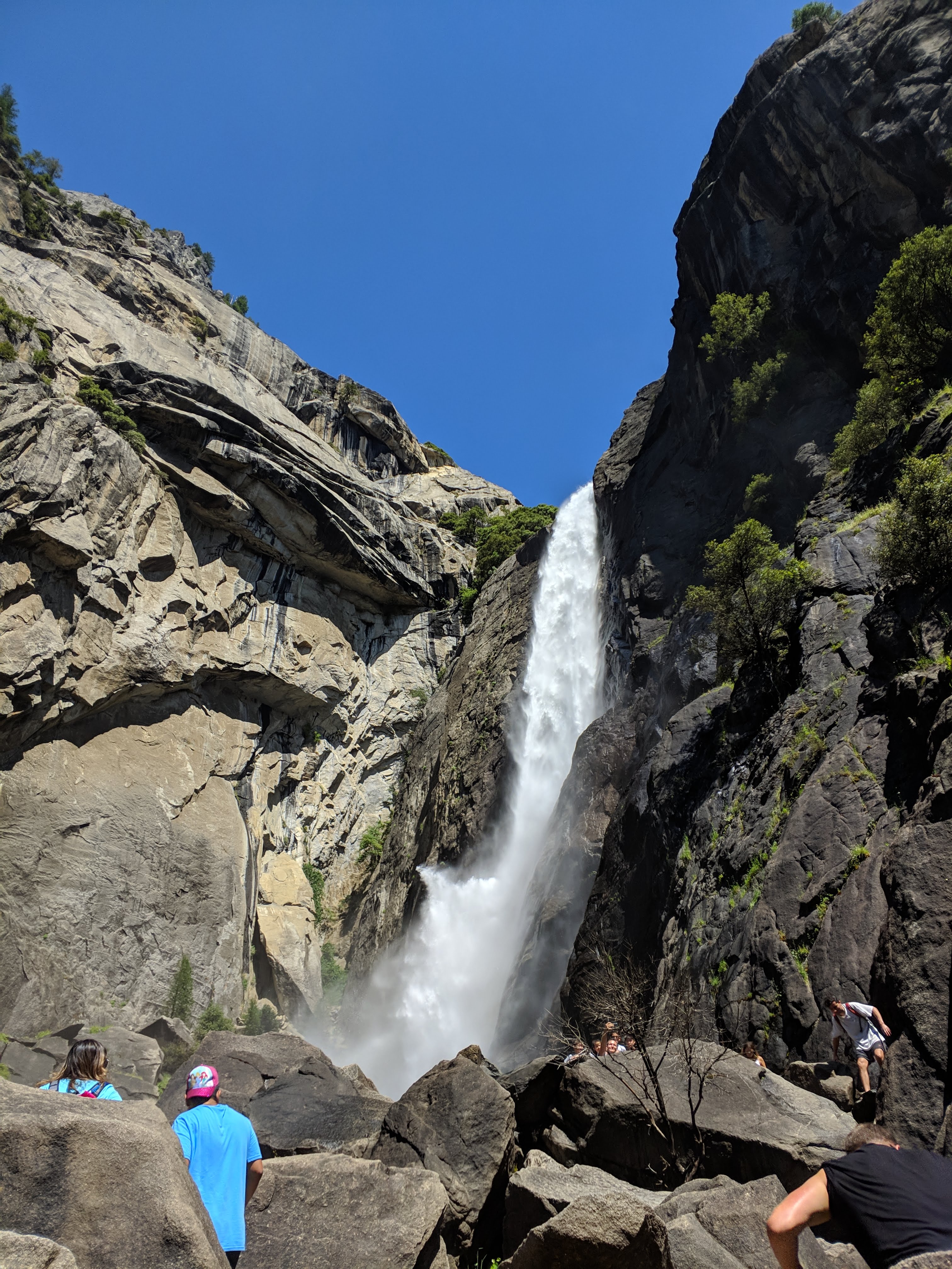힘들게 걸어서 온 보람이 있었던 Lower Fall. 밸리 안쪽의 높은 산들의 눈이 7월 하순에도 아직 다 녹지 않아서 수량이 풍부했기에 폭포도 아주 시원하게 내렸다. 여기 말고도 볼만한.. 그리고 할만한 트레일이 가득한 곳인데, 이날 우리는 점심을 먹고 Tioga Road (요세미티를 동서로 가로지르는 도로)를 이용하여 Bishop, Lone Pine을 거쳐 데스밸리 초입까지 가야 했기에 폭포만 보고 다른 활동은 못했다. (너무 아쉬움)