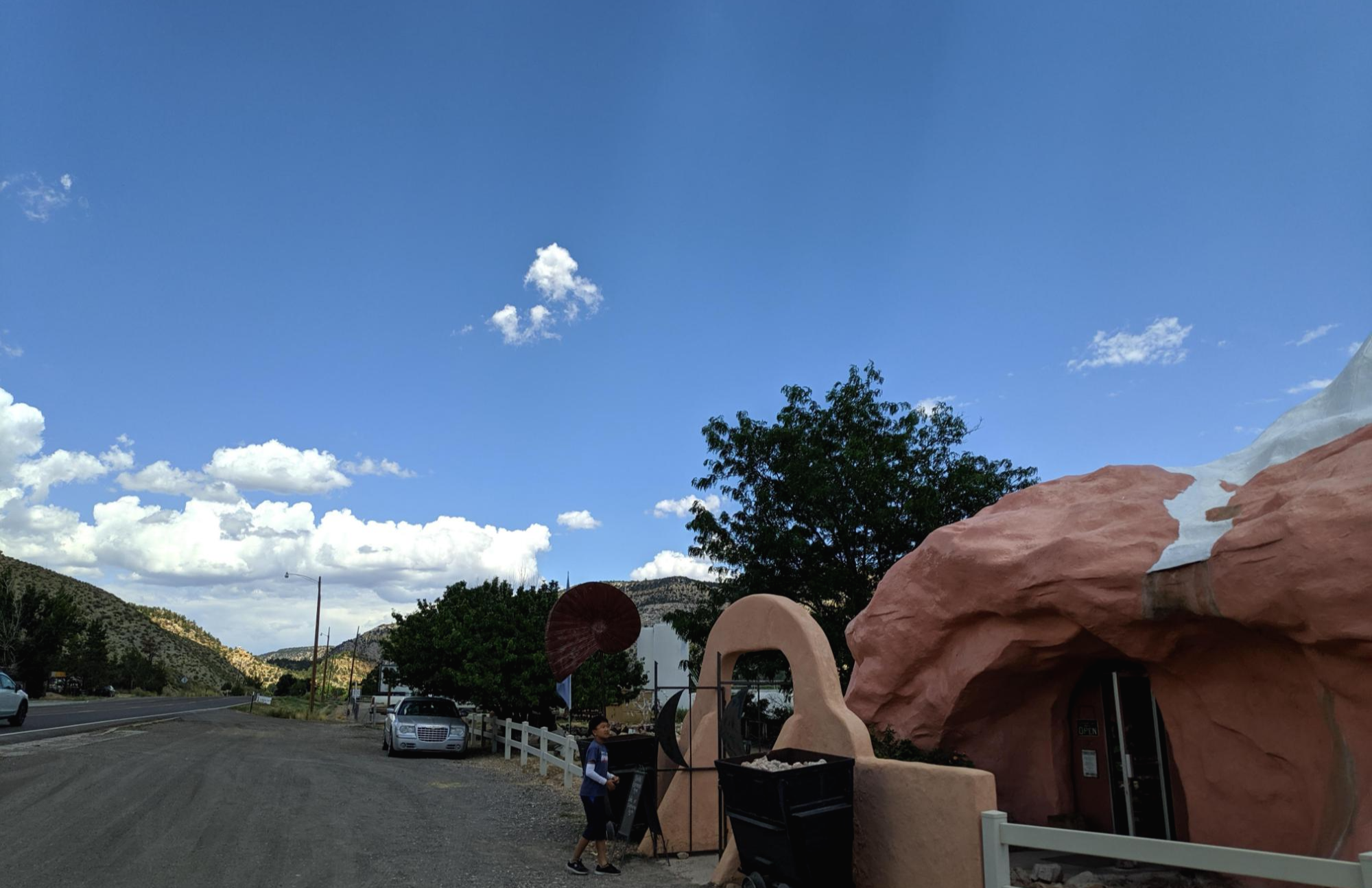 이 샵은 작은 마을인 Orderville 을 지나서 바로 나오는 곳이기는 하지만, 역시나 오늘도 우리 차 뿐 아니라 여러대의 차량이 잠시 주차하며 이 샵에 들리는 것을 경험한다. 전날 들른 곳과는 크게 다른 것은 없지만, 나중에 들른 가게는 야외에 조형물들 아기자기하게 잘 꾸며놓은 점은 특색이 있었다.