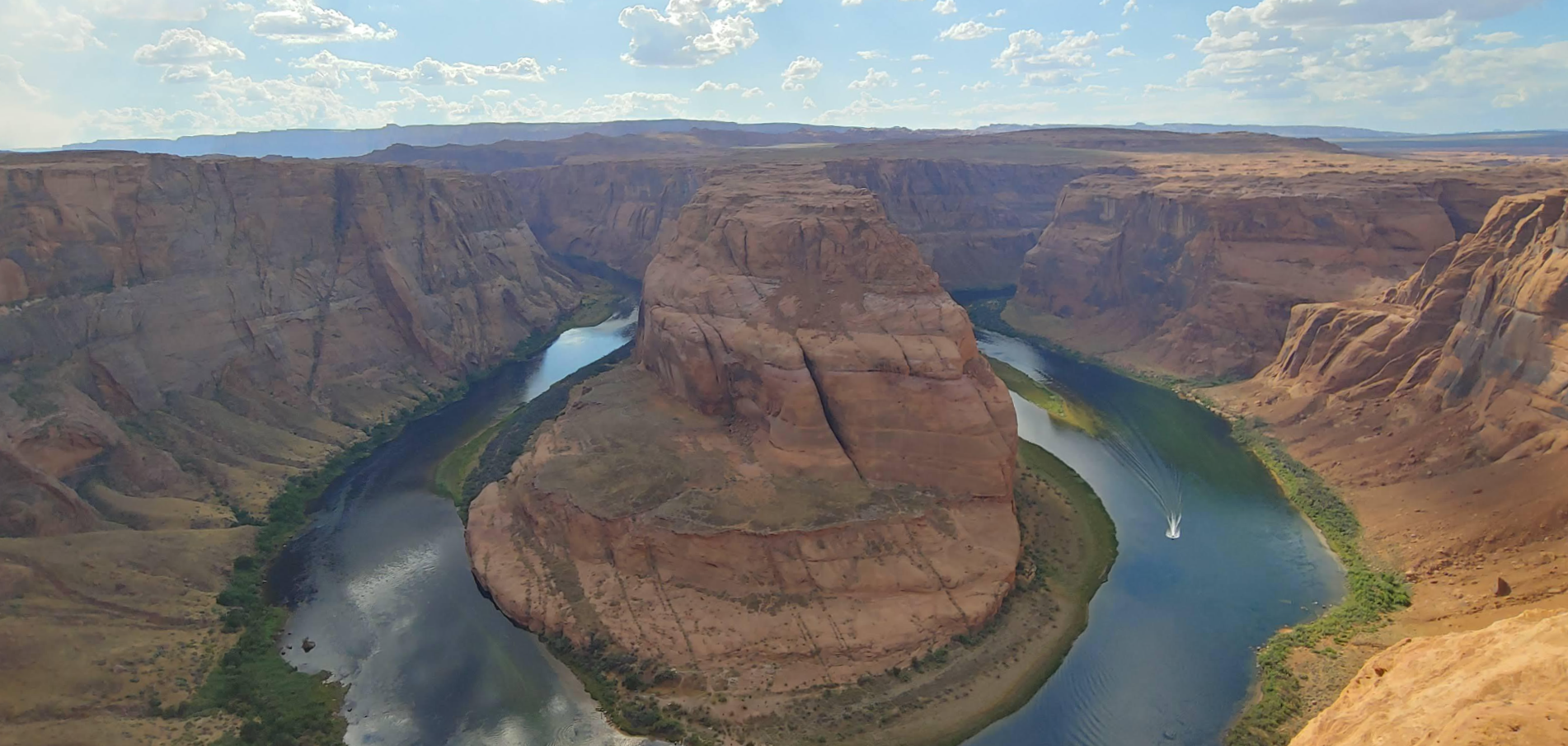 호스슈벤드는 말 그대로 말굽의 모양으로 콜로라도 강이 흐르는 곳이다. 힘들게 땀 뻘뻘흘리면서 전망을 볼 수 있는 곳으로 가면, 아래 사진과 같은 자태를 풍기는 호스슈벤드가 나타난다.