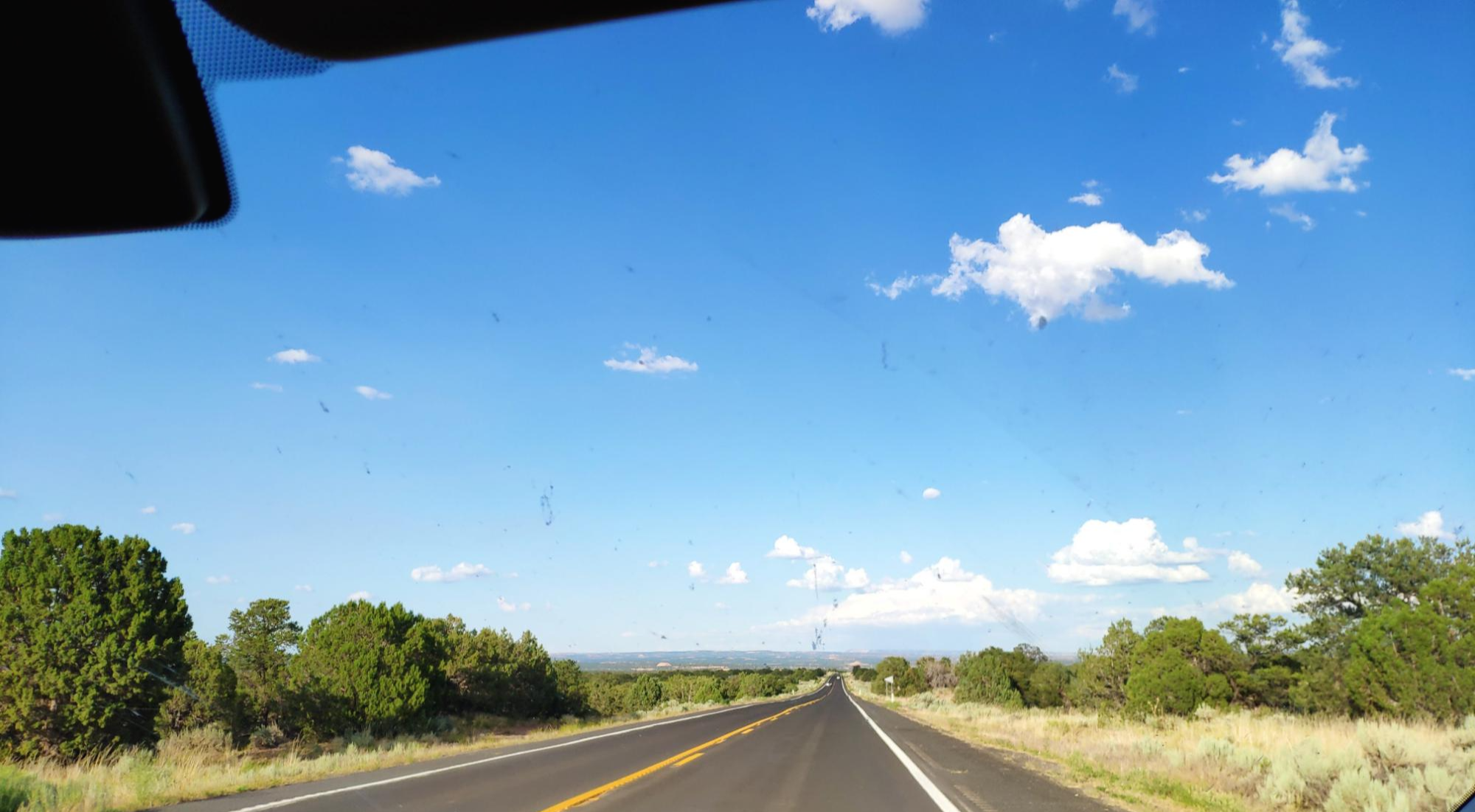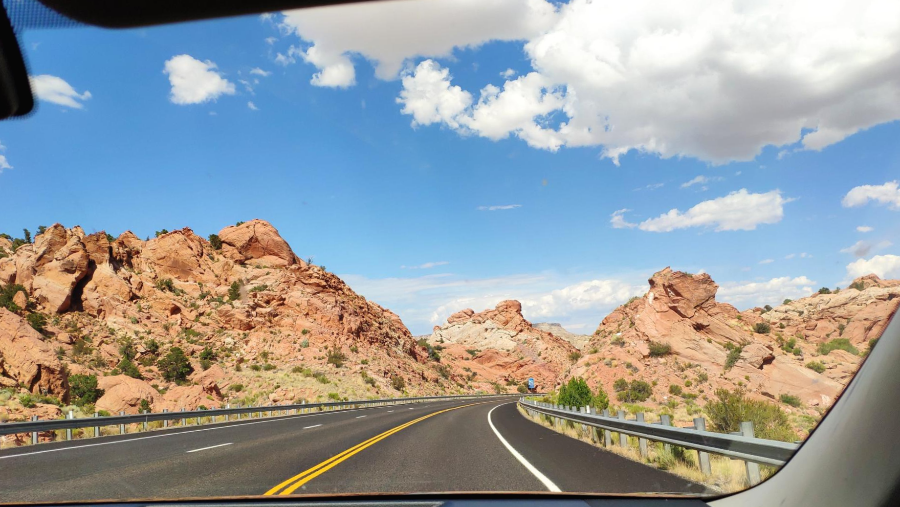 카이옌타 (Kayenta)라는 곳은 유명한 곳은 아니고, 우리의 다음날 목적지가 모뉴먼트 밸리(Monument Valley)였기 때문에 가는 길목에 있는 곳으로 숙소를 잡았다. 모뉴먼트 밸리 앞쪽 숙소는 좀 비싸기도 하고 하여 30분 안쪽 거리인 그곳으로 숙소를 잡고는 또 쭉 뻗은 도로를 열심히 달려간다. 크루즈만 걸고 앞만 바라보고 있으면 저절로 도착하는 느낌. 차 앞유리가 깨끗하지 않았지만 Joshua를 시켜 풍경 좀 담아보라고 해서 담은 풍경들이다.
