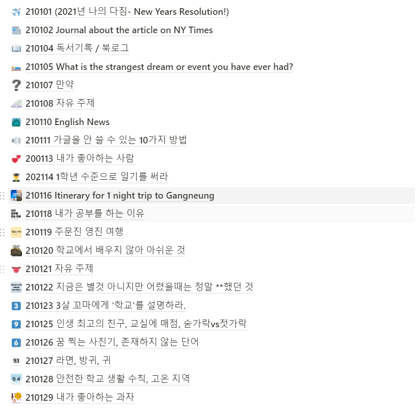 디지털 기록의 장점인 어디에서든 온라인으로 연결만 되어 있으면 볼 수 있는 자료는 참으로 편한 것 같습니다. 공책에 직접 적었다면, 1월의 글쓰기 결산을 하기 위해서는 그 공책이 지금 제 손에 있어야하고, 또 종이를 하나 하나 넘겨가며 했던 날과 안했던 날. 그리고 주제가 무엇이었는지를 따로 옮겨 적어야 했었을테니까요.