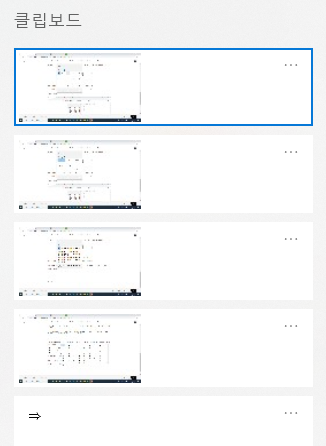 위 화면은 제가 처음 올린 팁인 이모지의 3 화면을 쓰기 위해 스크린 캡쳐 했던 화면이 모두 클립보드에 들어가 있는 화면이에요. 하나 캡쳐하고 붙여넣고 다시 또 캡쳐 안하고 3번의 스크린샷을 차례로 딴 후 클립보드로 열어서 3개 붙이고 티스토리 에디터에서 사진 편집으로 잘라내기만 했습니다.