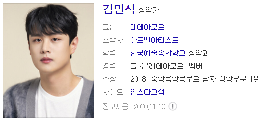 깔끔하면서도 파워풀한 고음을 안정적으로 해주는 우유빛깔 테너 김민석