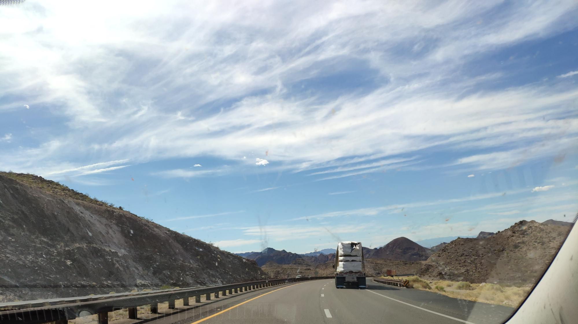 그랜드캐년에서 라스베가스로 가는 길은 여태까지 다녀왔던 도로와는 다르게 교통량이 꾸준히 많이 있었다. 미국 영화를 보면 과속하면 숨어있던 경찰이 갑자기 뒤에서 나타나서 차를 세우는 장면이 종종 나오는 것과는 다르게, 생각보다 속도가 빠른 차량도 많이 있었지만 경찰차는 본 적은 없다. 대부분 크루즈 걸고 가는지, 나란히 쭉 뻗어 있는 길을 따라 달린다.