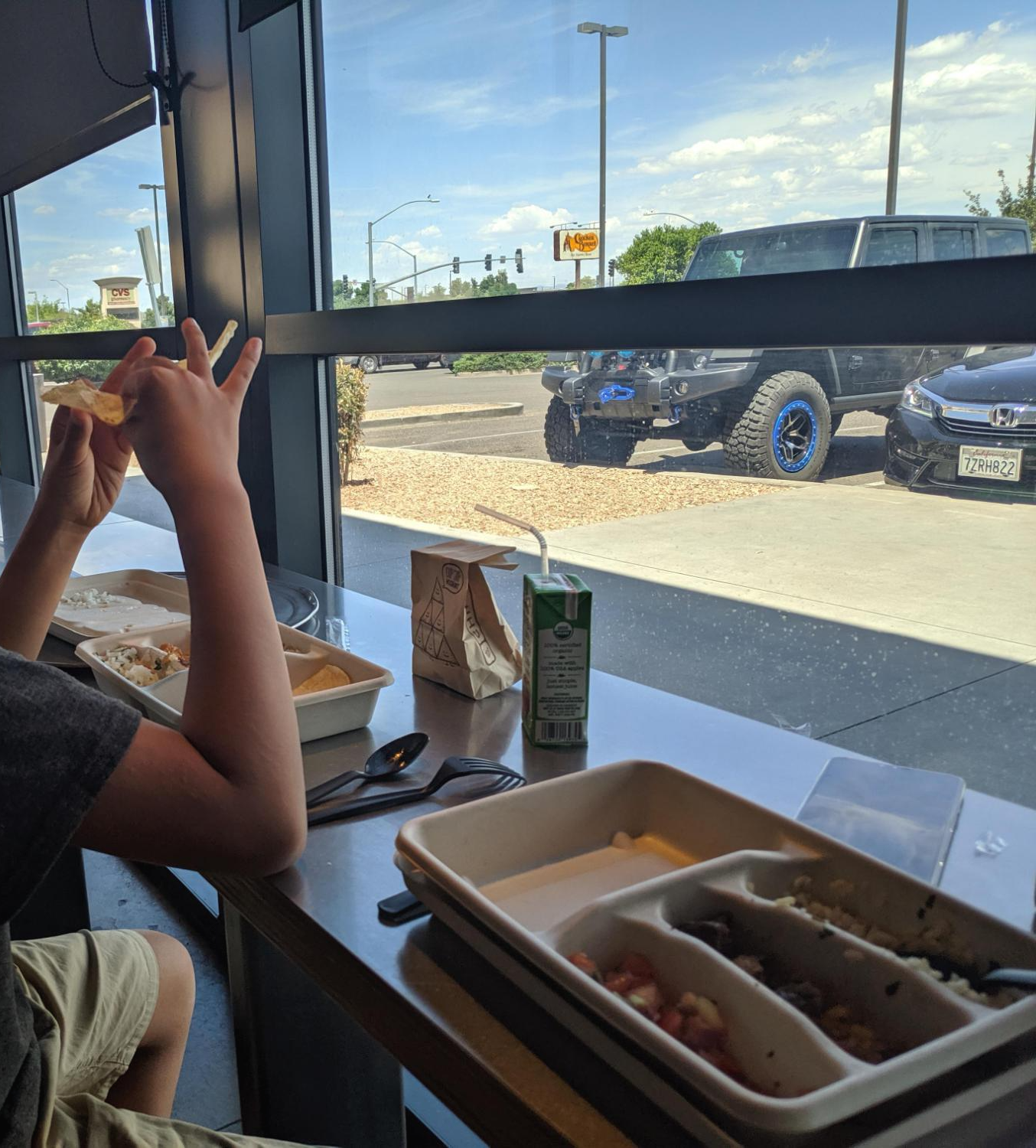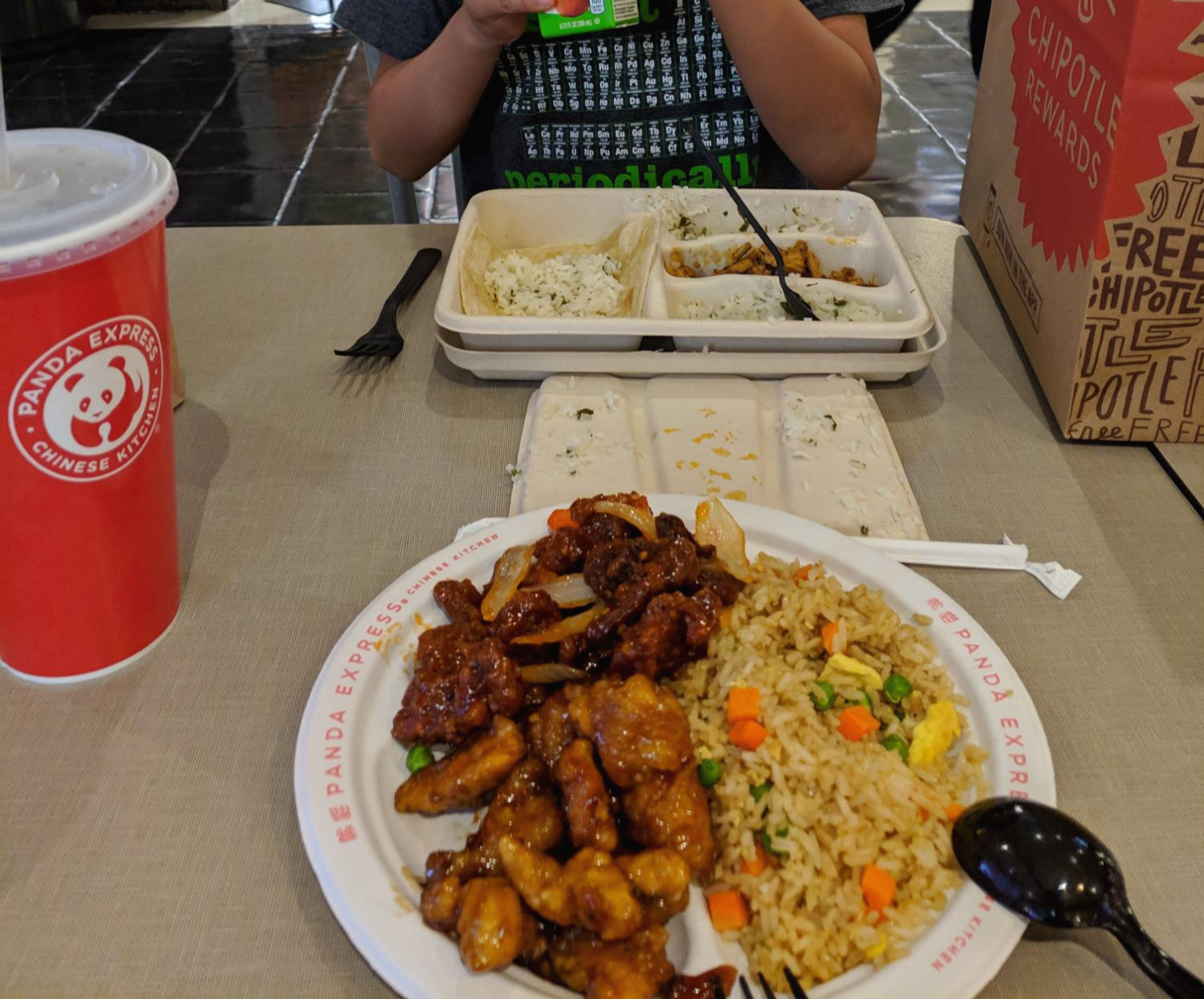 한 번 꽂히면 똑같은 것만 찾으니, 새로운 것도 먹어보게끔 나는 판다익스프레스(Panda Express)에서 Joshua가 먹을만한 것을 샀다. 오른쪽 사진 아래쪽에 있는 판다익스프레스. 이 날을 기점으로 이제 치폴레와 판다익스프레스만 번갈아 가며 우리의 식사를 책임지게 되었다.