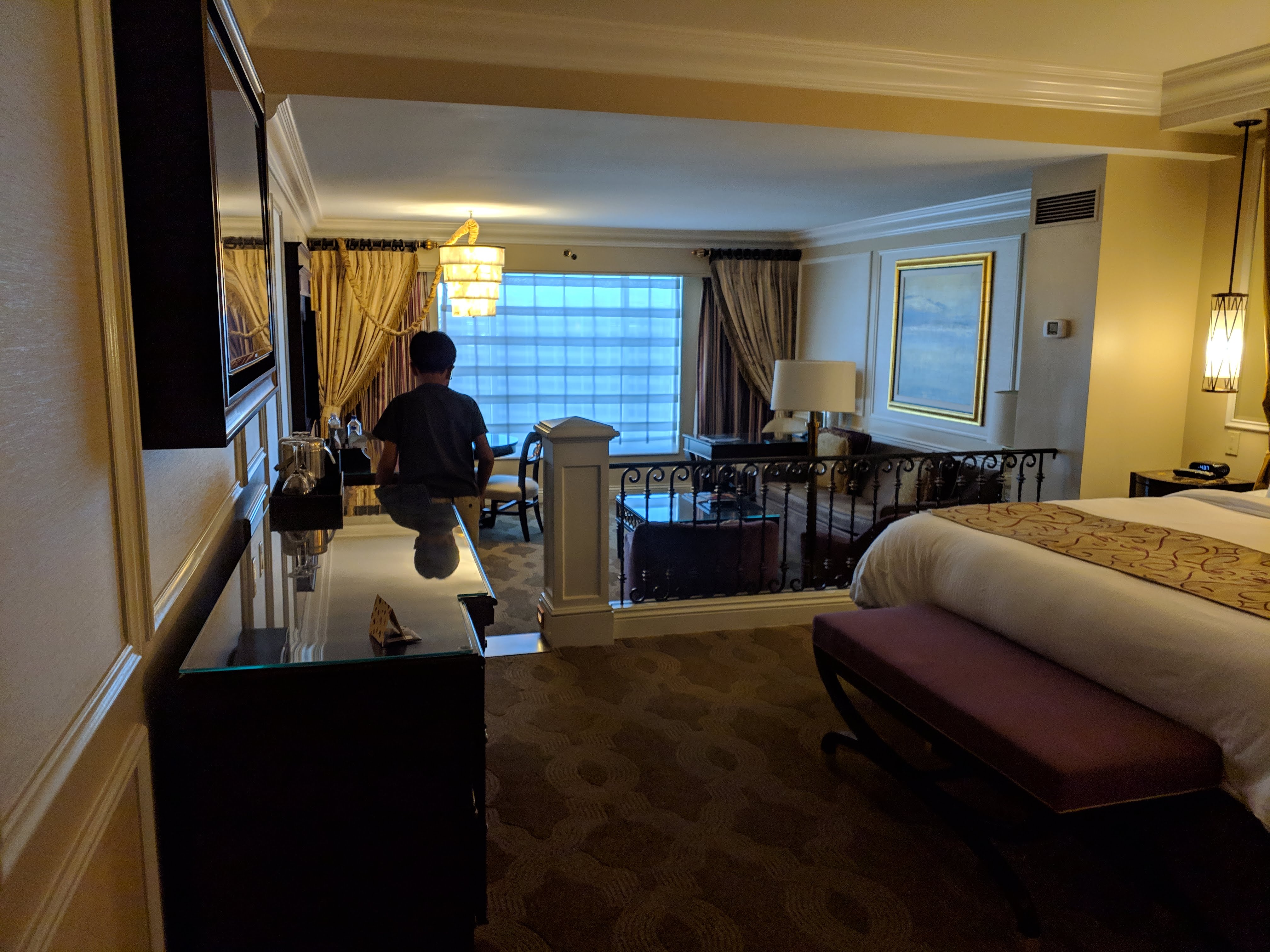 역시 라스베가스답게 룸은 스위트 타입으로 되어 있어서, 여지껏 갔던 곳 중 최고의 룸이었다. 티비도 침대 앞쪽과 창가 옆 소파 앞으로 각각 설치되어 있고, 티비를 켜면 내 이름이 적힌 화면이 나오는 등. 역시 라스베가스는 라스베가스구나 싶었다.