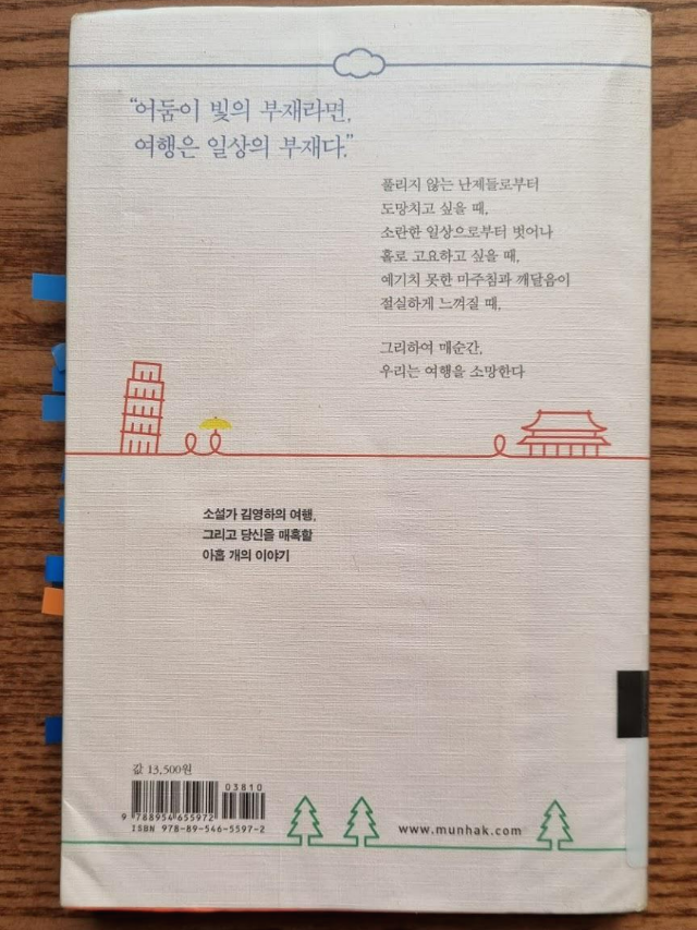 그런 여행기에는 실패한 경험, 고생한 경험들이 함께 있는 경우가 많다. 때로는 꿀팁이 포함되어 있어서 여행을 준비할 때 큰 도움이 되는 때가 많다. 하지만, 김영하 작가가 말한 것처럼 계획했던 모든 것이 완벽하게 다 이루어진 여행이 있다면 재미가 없을 것 같다. 일반인에는 그런 잣대를 들이대기 힘들겠지만, 전문 작가의 여행은 특히나 그럴 것이라는데 동의한다.