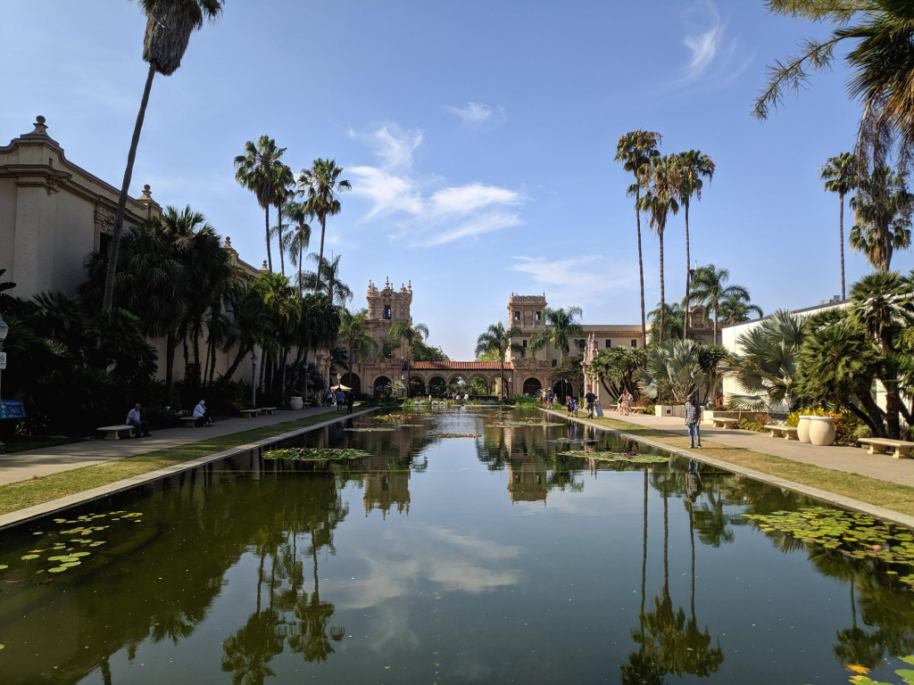 아침부터 캘리포니아의 따사로운 햇살이 가득했던 샌디에고. 오늘의 일정은 도시 한 복판에 위치한 초대형 공원인 발보아파크를 가는 날이다. 면적이 무려 5 제곱킬로미터에 달한다. 동서로 2.5km, 남북으로 2.3km 정도의 크기이다. 공원 안에 동물원, 미술관, 박물관 등을 비롯한 전시관만 14개가 있는 곳이어서, 자신의 취향에 맞는 방문 장소를 택해서 하루 종일 이 공원에서 시간을 보낼 수도 있는 곳.