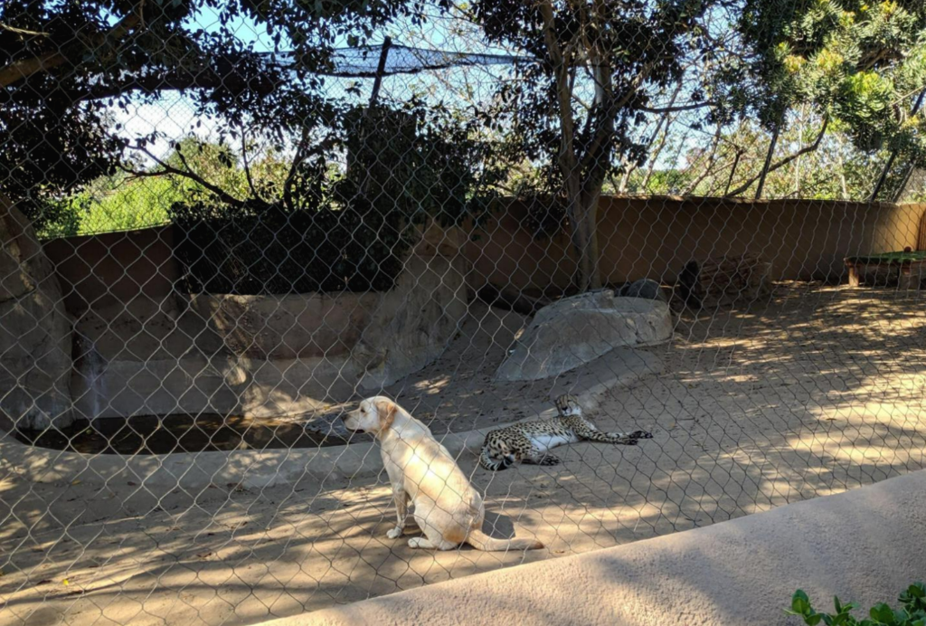동물원에서는 버스를 타고 이동하며 설명을 듣는 코스를 택했다. 2층 버스를 타고 동물원을 돌면서 기사가 버스가 멈춘 곳에 있는 동물들에 대해 설명해 주는 것이다. 그렇게 버스를 타고 한 바퀴 돌고는 몇 군데는 걸어서 다시 한번 가 보았다. 그중 가장 재미있던 동물이 저 치타와 개다. 가이드의 설명으로는 둘이 완전 절친이라고 한다. 사진에서도 보면 시크하게 다른 곳을 보는 개와 그런 개를 쳐다보는 치타의 모습이 보인다.