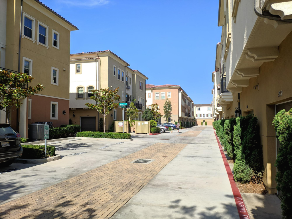 우리나라에도 타운하우스들이 많이 생기고 있는데, 이 숙소가 있덩 동네의 모습이 약간 비슷한 형태였다. 이곳은 모든 집에 차고가 설치되어 있어서 바깥에 주차된 차들은 방문객 외에는 거의 없다. 구글 스트리트뷰를 촬영하는 차도 못 들어오는 공간인지 스트리트뷰도 없는데, 이런 타운 안쪽의 길에도 길 이름을 붙여 놓은 부분은 신선하다.