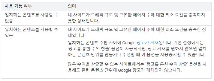 이 광고 단위가 활성화 되기 위해서는 여러가지 조건이 있다고 합니다. 애드센스 고객센터에서는 아래와 같이 설명하고 있습니다.