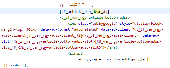 이렇게 하면 본문 중간에도 삽입할 수 있습니다. 하지만, 가독성도 떨어지고 광고 목적에도 맞지 않으므로, 본문 최하단에 해당 코드를 삽입해 놓는 것이 좋습니다.