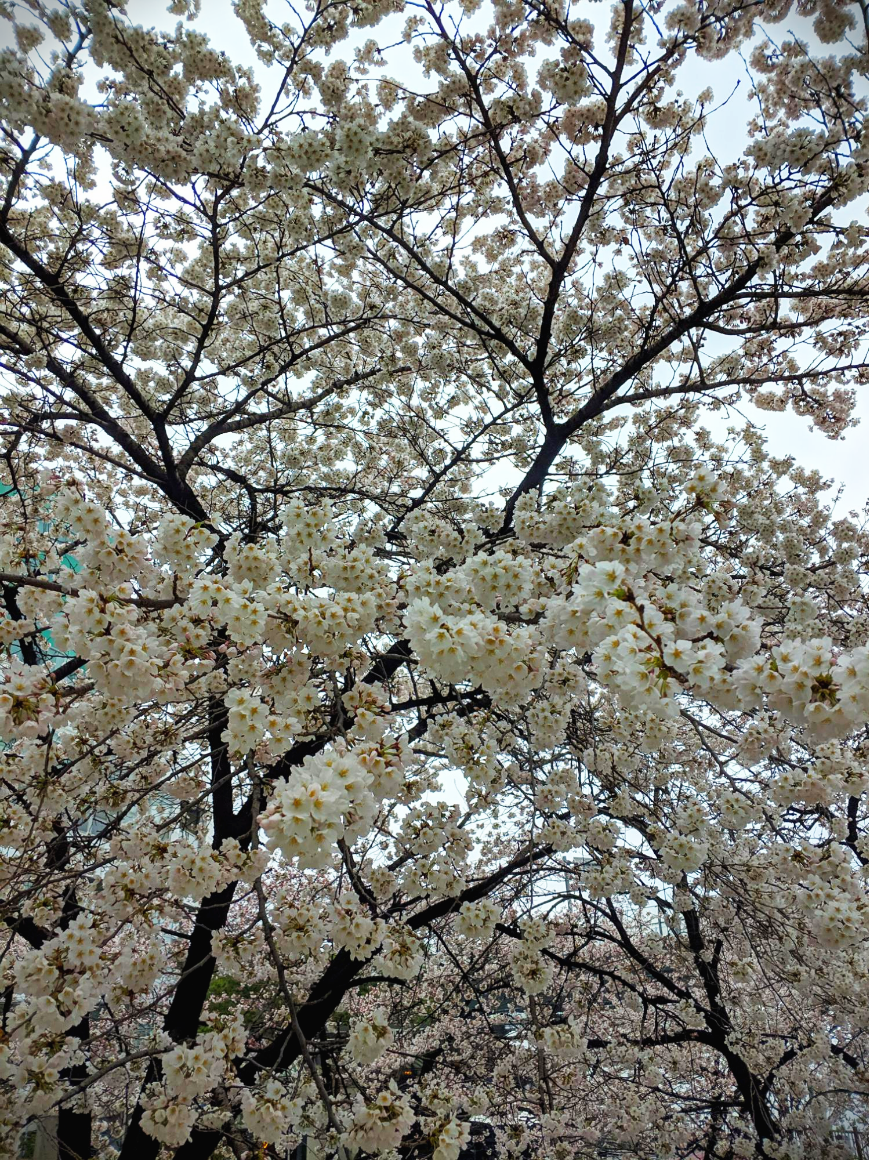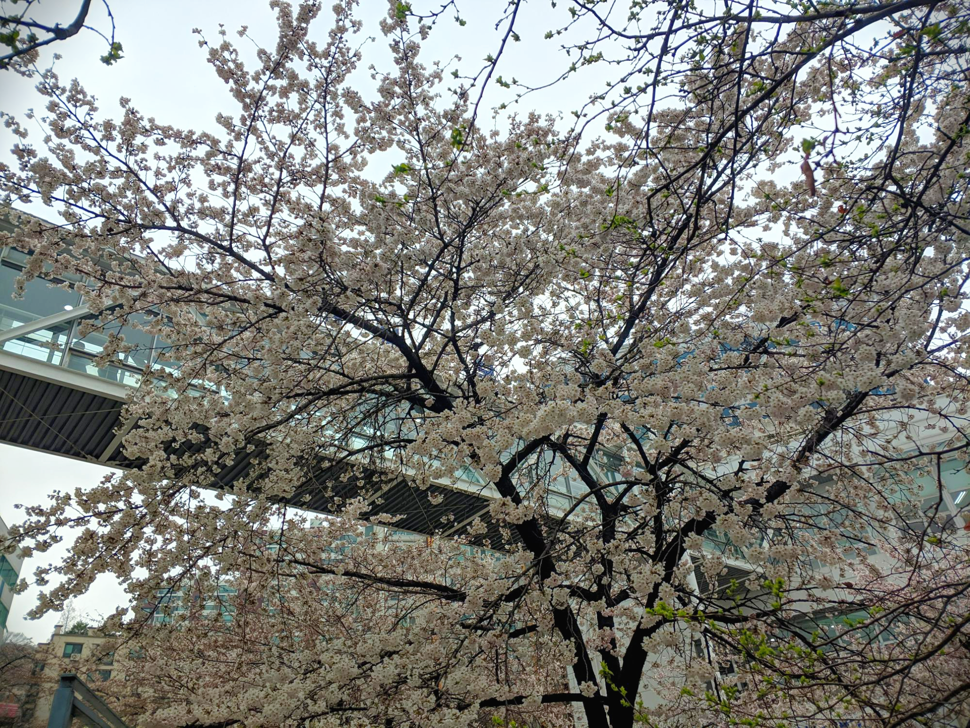 하얀 벚꽃이 가득한 나무가 너무 멋졌습니다.