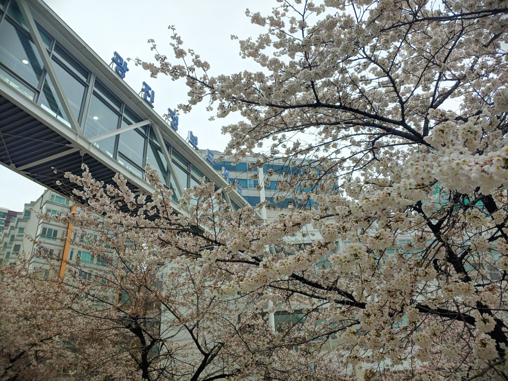 서울 벚꽃 상황 - 광진정보도서관 앞 벚꽃 만개