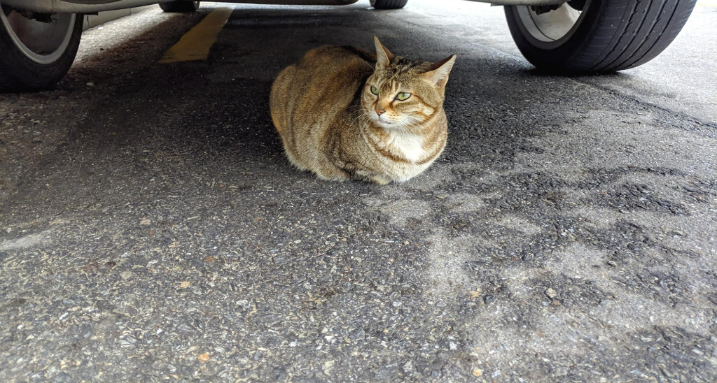 돌아오는 길에는 차 밑에서 식빵 굽고 있는 고양이도 봄을 만끽하고 있었습니다.