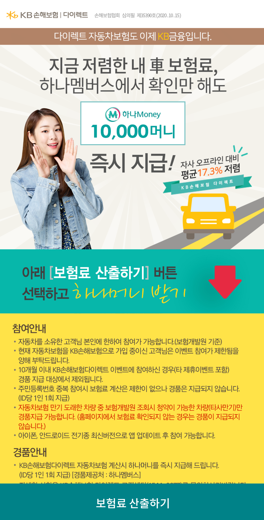 이곳에서는 현대해상 1만 포인트가 하나멤버스보다 더 있으니, 현대해상은 이곳에서 꼭 견적을 내 보세요.