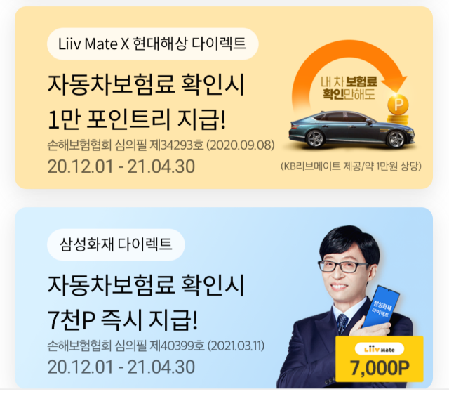 | 자동차보험 견적시 적립급 이벤트 (2021년 4월 12일 기준) |