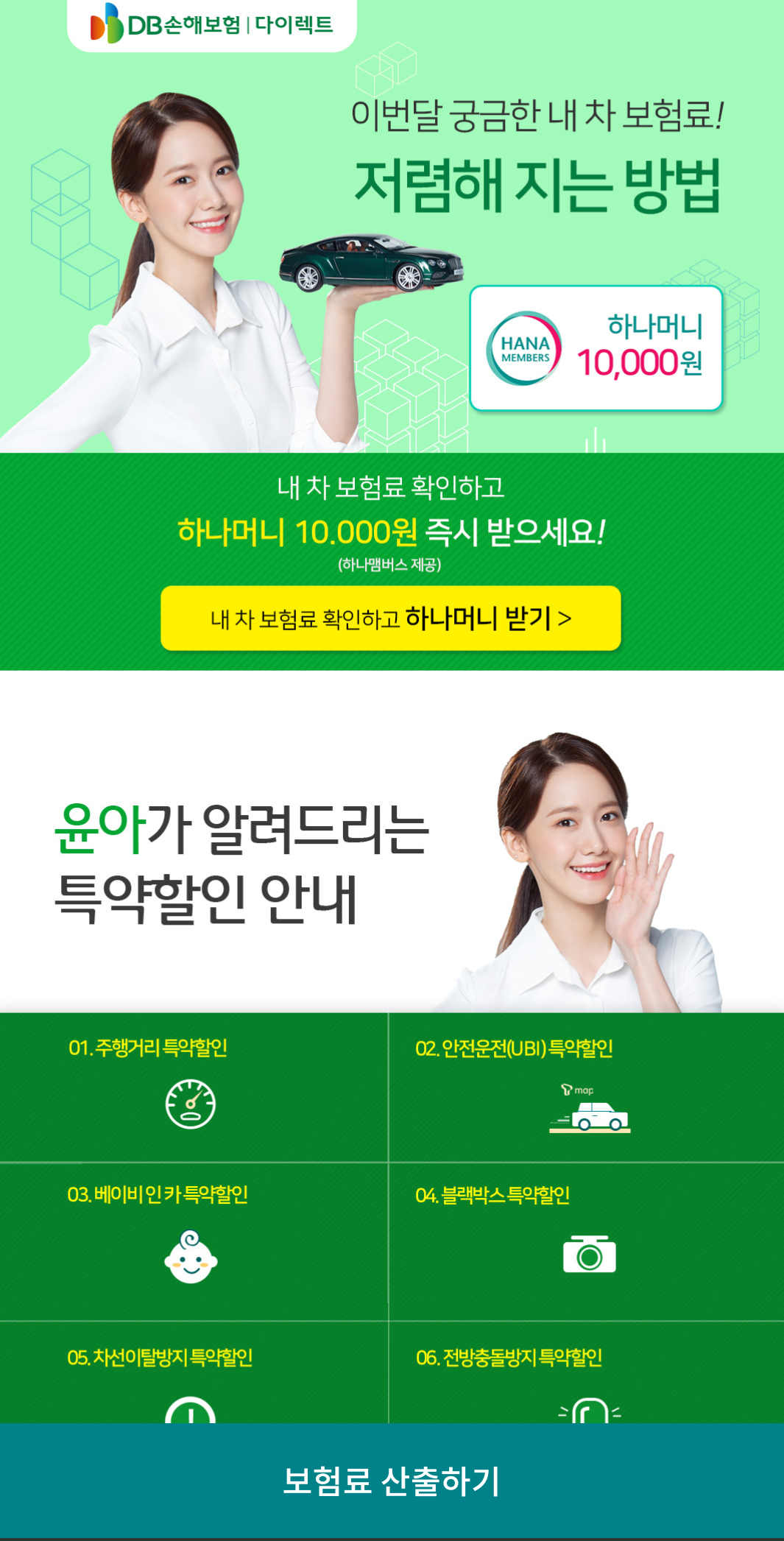 KB손해보험은 김연아, 동부화재는 윤아, 삼성화재는 유재석입니다. 모델이 필요 없으면 현대해상이네요.
