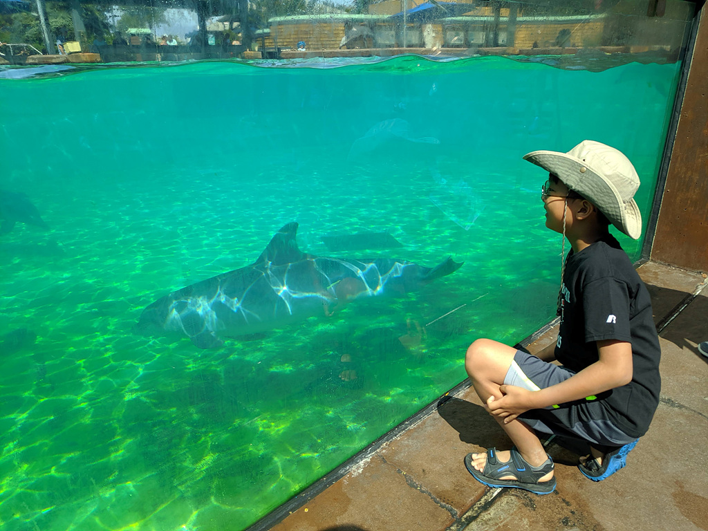 그리 짧은 시간도 아니었지만, 다시 지상으로 내려온게 참 아쉬웠다. 그렇다고 두 번을 탈 정도까지는 아니다. 이제 본격적으로 해양동물 탐색에 나선다. Joshua는 해산물을 먹는 것도 좋아하지만, 보는 것도 좋아한다. 돌아다니다 보면 유독 사람들이 많이 모여 있는 곳들이 나온다.