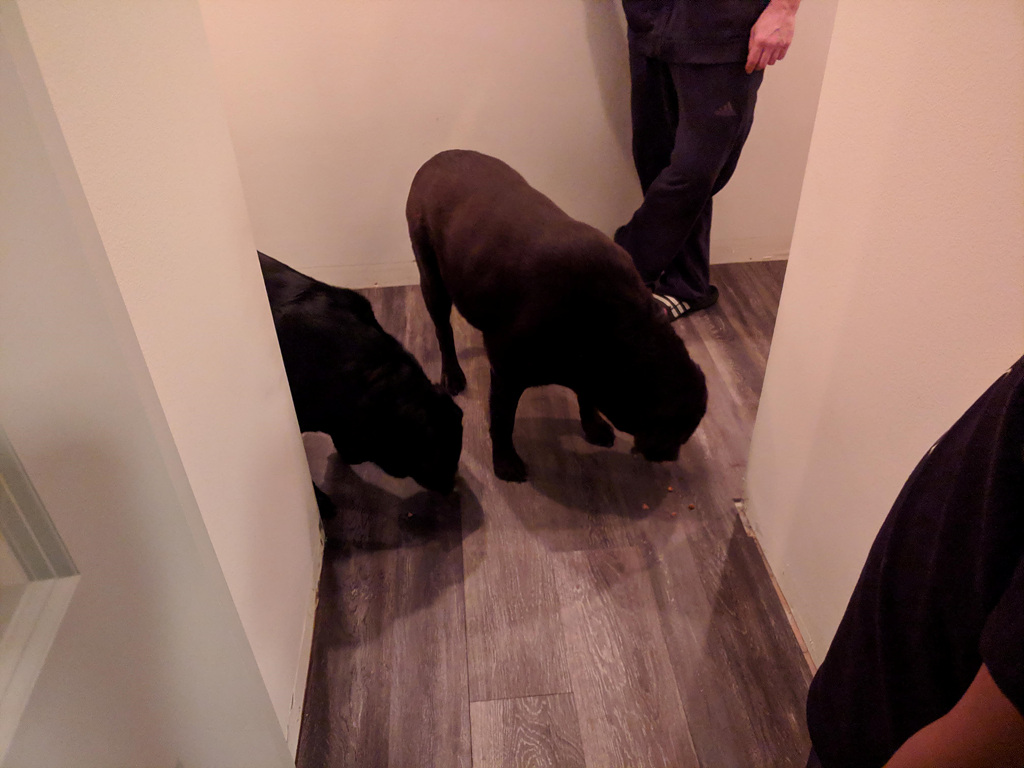 이런 대형견은 나도 자주 본 것이 아니어서 조금 당혹스러웠다. 특히나 사람을 좋아하는 이 녀석들은 우리를 보더니 좋다고 앞다리를 들고 나에게 발을 내리기도 했다. 저런 덩치가 그렇게 하니 Joshua는 겁을 먹고 도망쳤다. 나는 개가 이렇게 무겁게 내 가슴팍을 칠 수도 있다는 것을 알게 되었다. 이 두 녀석은 다음날 정말 엉뚱한 모습들을 보여준다.