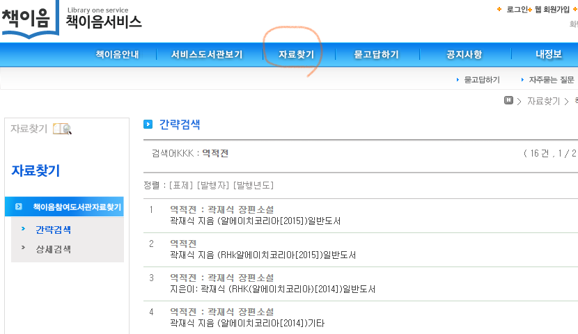 책이음과 책바다 서비스 홈페이지 이용해서 찾기