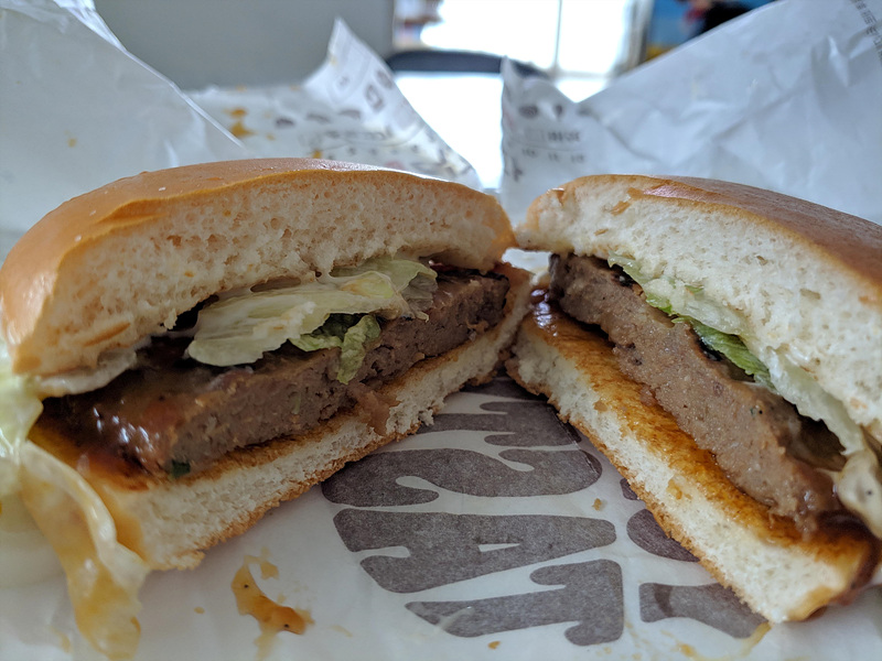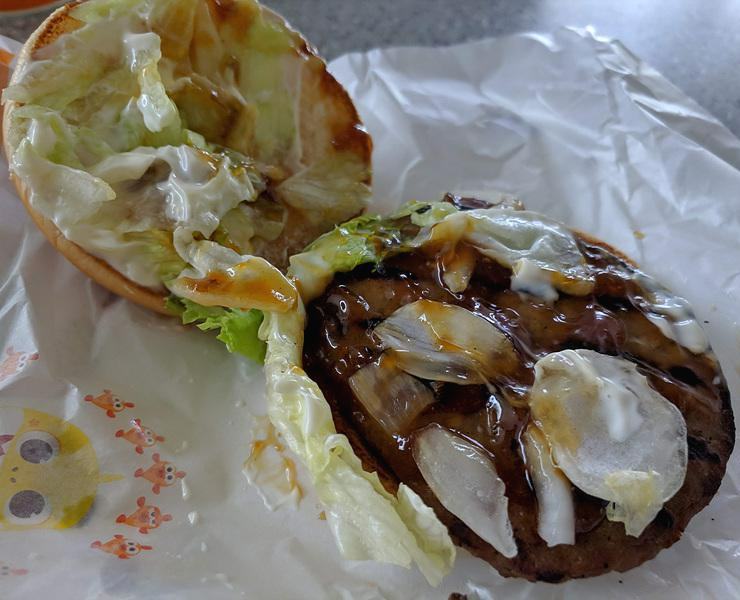 패티에서는 불향은 거의 느껴지지 않습니다. 직화라고 하는데 불향이 없으니 앙꼬없는 찐빵이 되버린 셈입니다. 더블 오리지널 치즈버거는 와퍼주니어의 패티를 두 장이나 사용해주어서 패티의 식감이 좋았으나, 직화불고기 패티는 단단하기는 하지만, 씹는 맛이 조금 부족합니다. 탱글탱글한 느낌은 있습니다.