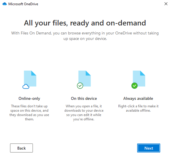 이미 원드라이브가 설치되어 있으면 <로그인 ⇒ 동기화 폴더 선택 ⇒ 완료>의 아주 간단한 절차로 원드라이브 사용 준비가 됩니다. 이미 설치가 되어 있으면 원드라이브를 처음 시작할 때는 아래와 같은 화면이 뜹니다. (만약 마이크로소프트 계정이 없으면 계정 생성 과정이 추가되겠네요.)