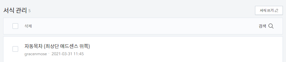 🔻 서식관리에 들어가면 글관리 화면과 비슷한 아래 화면이 뜹니다.