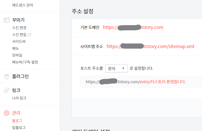 티스토리 주소 설정