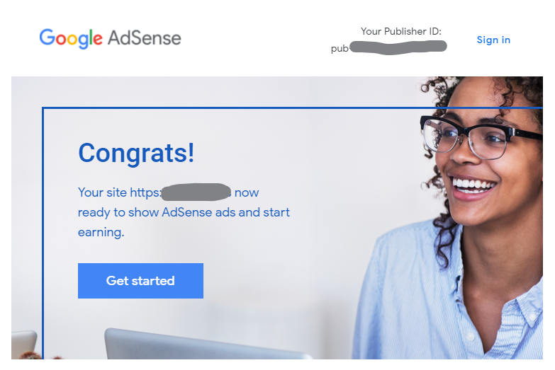 애드센스의 승인을 처음으로 받는 경우에는 왼쪽과 같이 기다리고 있는 누님이 등장하는 좋은 소식을 받을 수 있는 것이고, 기존의 애드센스 계정에 사이트추가로 신청한 경우에는 누님이 다시 찾아오지 않습니다. 그냥 퍼런 화면에 좋은 소식이 있다고만 말해줍니다.