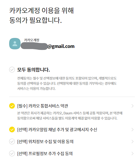 🔻 카카오계정 약관 동의 - 선택은 웬만하면 동의하지 않는 것은 기본이죠?