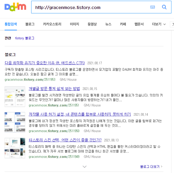 티스토리 블로그 다음 최적화 상태 확인