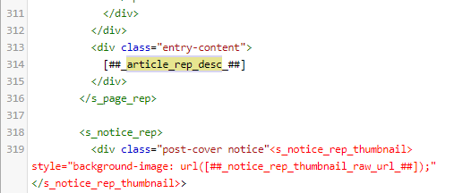 ▲ 첫 번째 나오는 것은 314행에 나옵니다. <head> ~ </head> 사이에 뭔가 작업을 했으면 몇 줄 아래에 나오는 것은 알아서 판단하시면 됩니다. 요 밑에 보면 <s_notice_rep> 이런게 이어지죠? 여기에 애드센스 광고 코드 넣어봤자 아무것도 안 나옵니다.