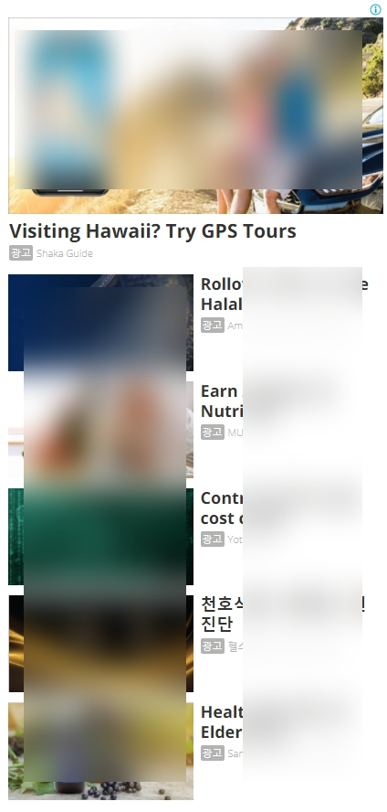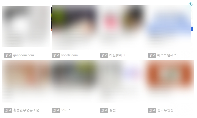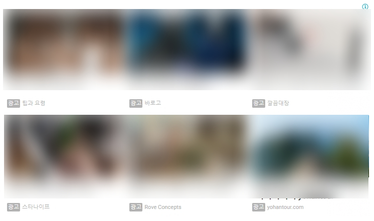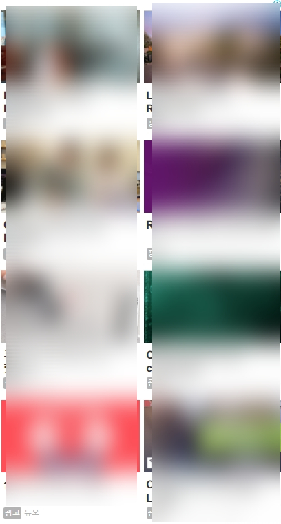 광고 그대로 넣으면 진짜 광고와 헷갈릴 것 같아서 블러 처리를 좀 했다. 위와 같이 4X2 형태로 모두 광고로 바뀌었다. 이렇게 광고로만 채워졌기 때문에 내 블로그 안에서 관련글을 보여주는 것이 사라져서 블로그 체류 시간은 줄어들 수 있다.