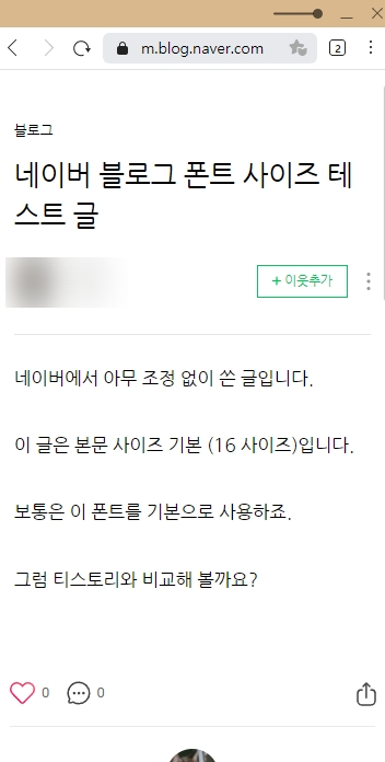 모바일웹에서는 본문2로 내용을 작성해도 네이버와 비교해서 딱히 작지도 않고 가독성이 나쁘지 않아 보입니다.