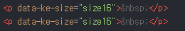 아무 작업 없이 글을 쓰고 HTML 모드 들어가서 확인하면 이렇게 나오니까요. 사이즈16이라고 되어 있네요. 하지만 스킨에서 문단(p태그)에 들어가는 폰트 기본 속성이 15px에 준하는 것으로 세팅되어 있으니 실제론 작게 보이는겁니다.