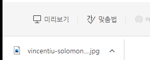 크롬에서 사진이나 문서 등을 받으면 크롬 창 아래에 받은 파일이 표시가 된다.