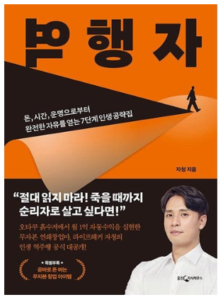 이 책은 읽기만 해서는 안 된다. 반드시 실천이 동반되어야 한다. 모든 자기계발서가 그렇지만, 실행 없이는 아무것도 얻지 못한다. 저자인 '자청 (자수성가한 청년의 줄임말이라지만, 본래 뜻인 어떤 일에 스스로 나서기를 청하는 사람이기도 할 것이다.)'의 인생 성공기와 함께 어떻게 하면 성공할 수 있을지를 고민해 보게 만드는 책이다.