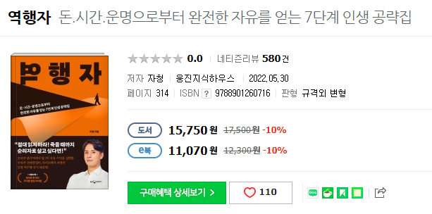 위 질문에 '생각해 보니 노력을 안 하고 있네.'라는 답을 하지만 그래도 난 성공하고 싶다는 열망이 가득하다면 이 책 『역행자』를 읽어볼 것을 강력 추천한다.