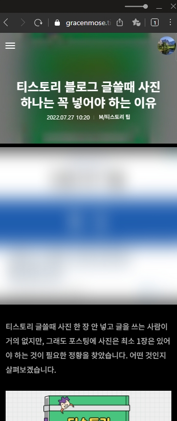 티스토리 블로그를 하시는 분들이라면 티스토리 앱을 쓰겠죠? 앱에서 우리가 보는 글의 모습이 바로 모바일웹 화면입니다.