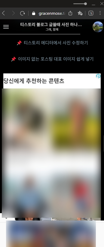 티스토리 앱에서는 어쩔 수 없이 감수해야 합니다. 하지만 뭐, 티스토리 앱으로 우리 블로그 접속하는 사람이 얼마나 되겠어요? 그 정도는 가볍게 무시해도 괜찮은 수준일겁니다.
