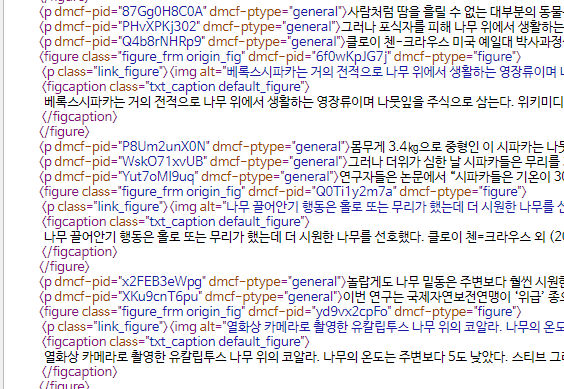 다음(daum) 포털에 올라온 기사 하나를 클릭해서 원본보기로 살펴보면 아래의 왼쪽과 같이 문단 사이에 간격이 있지만, 오른쪽 코드를 보면 빈 문단 없이 p태그로만 문단이 구성된 것을 볼 수 있습니다.
