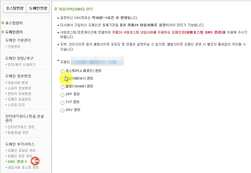 호스팅케이알에서 구매한 도메인의 네임서버 바꾸는 방법