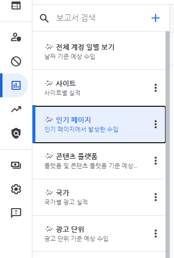 애드센스 홈페이지에 들어가면 좌측 메뉴의 중간에 '보고서' 페이지가 있습니다. 이곳에서 가끔 CPC 확인을 하거나 사이트별 수익, 광고 단위별 수익 등을 확인할 수 있지요.